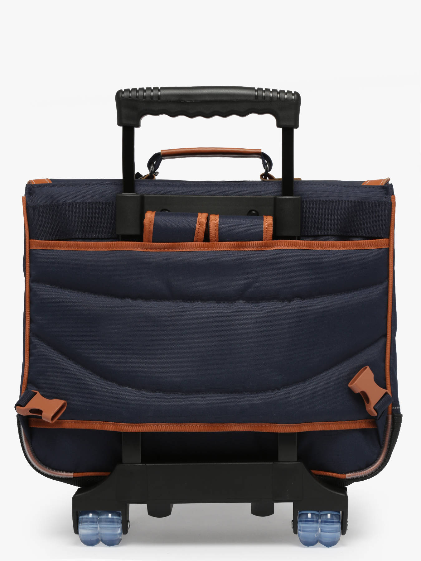 Le cartable idéal pour un rentrée en CM1 ou CM2, sans se faire mal au dos, est issu de la ligne Fantaisie signée Tann's. Avec ses 41 cm et ses 2 compartiments, ce cartable à roulettes peut aisément contenir de nombreuses fournitures scolaires : cahiers 24x32, classeur A4 et même un classeur comptabilité. A l'intérieur, vous retrouverez également une petite poche zippée pour glisser de petits objets ainsi qu'une poche séparatrice zippée. Le fond de ce cartable est renforcé tout comme les coutures, le dos et les bretelles. Composé de polyester recyclé à partir de bouteilles en plastique, ce cartable est résistant à l'eau. Pour le goûter et l'agenda, les deux poches zippées à l'avant seront parfaites. Côté sécurité, ce cartable possède des bandes réfléchissantes à l'avant et à l'arrière. Ce cartable est aussi très pratique car il est doté de 4 roues, d'une poignée double tube rétractable et d'un emplacement pour ranger les bretelles et les sangles lorsqu'on le fait rouler pour éviter de se faire mal au dos.