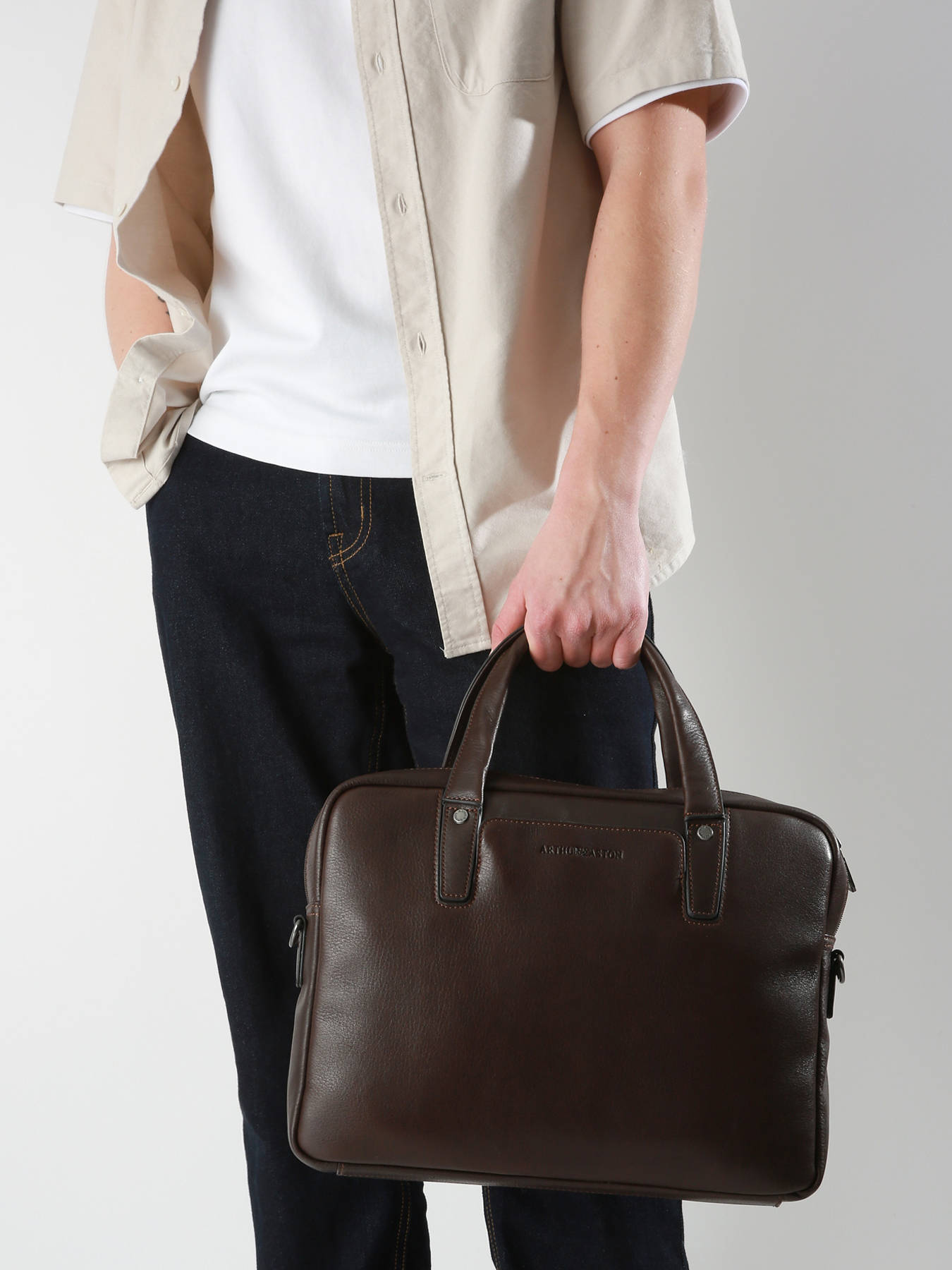 Le porte-documents ARTHUR & ASTON allie élégance et praticité. Conçu en cuir de vachette, il offre une grande durabilité et un aspect raffiné. Son extérieur dispose d’une poche avant et d’une poche au dos, tandis que sa fermeture zippée garantit la sécurité de vos affaires. À l’intérieur, un compartiment principal, deux poches simples, une poche éclair, un compartiment spécial pour tablette et un emplacement pour stylo permettent une organisation optimale. Sa bandoulière réglable et amovible ainsi que son passant pour poignée télescopique offrent une grande flexibilité de transport, à la main ou en bandoulière. Un choix parfait pour les professionnels.